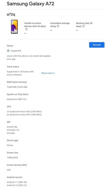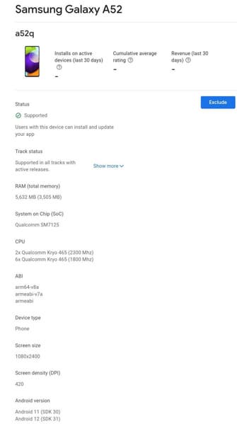 Как пишет источник, компания Samsung обновила описание смартфонов Galaxy A52 и Galaxy A72 на официальном сайте – теперь в перечне ПО фигурирует Android 12. Также в Google Play Console обе эти модели представлены двумя операционными системами – Android 11 и Android 12. Очевидно, Samsung уже вовсе тестирует Android 12 для своих хитовых моделей среднего уровня, и финальная ее версия уже не за горами.