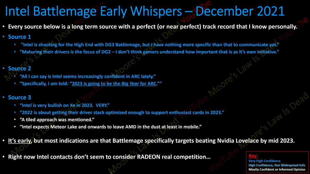 Также интересен вопрос конкуренции. Якобы Intel вообще не рассматривает AMD в качестве конкурента, целясь исключительно на соперничество с Nvidia Ada Lovelace. Правда, пока что, по имеющимся данным, эта линейка выглядит не так сильно, как следующее поколение карт AMD.