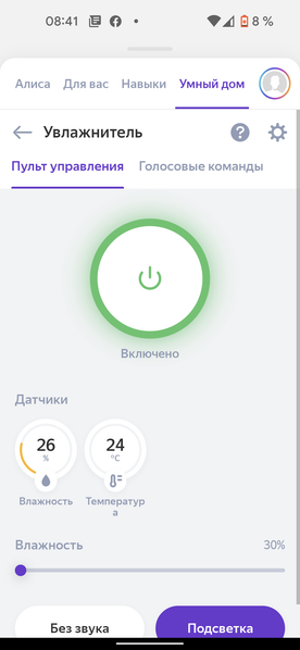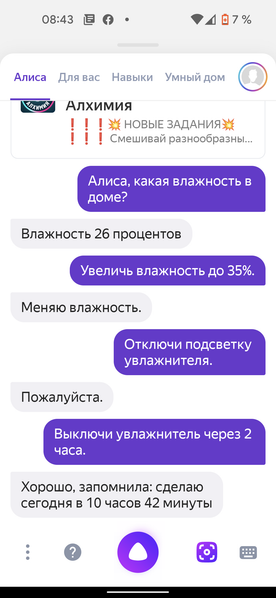 Протестировали мы и работу увлажнителя с голосовым помощником Яндекса.