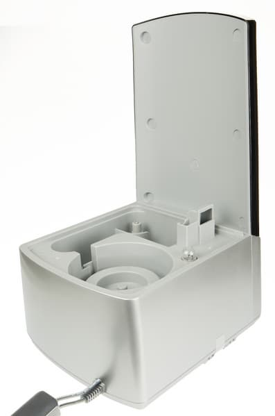 Корпус увлажнителя выполнен из серебристого пластика. Из того же материала и съемная верхняя крышка с диффузором для выхода пара.