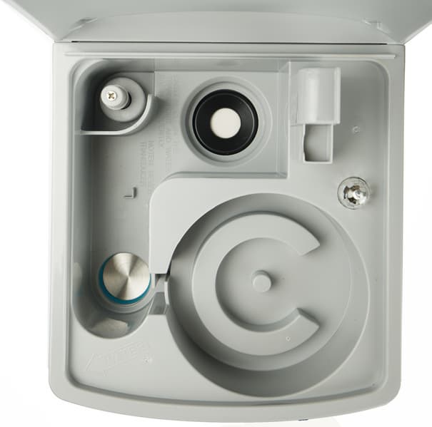 Резервуар для воды сделан из полупрозрачного пластика, позволяющего, хоть и не без труда, контролировать уровень жидкости.