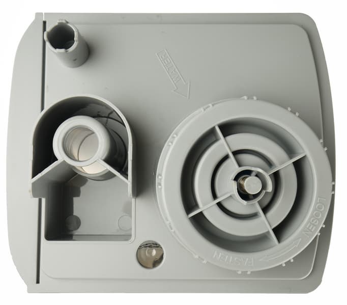 Заливная горловина закрыта круглой крышкой с дозирующим клапаном в центре. Рядом с ней — прозрачное окошко для лампы подсветки.