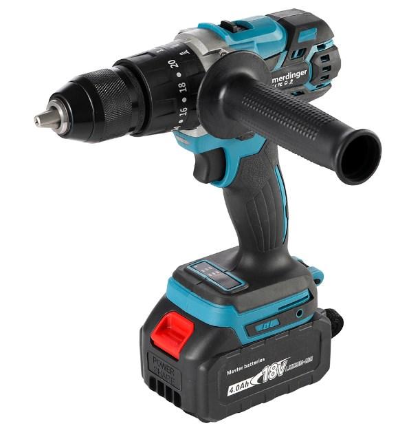 Следующая модель от фирмы Heimerdinger отличается наличием аккумулятора с электроемкостью на 4 Ач, а также высоким крутящим моментом. Также следует отметить, что шуруповерт совместим со многими аккумуляторами от компании Makita. Инструмент можно заказать, как просто в картонной коробке, так и с транспортировочным пластиковым кейсом. Также в комплекте сразу можно приобрести несколько аккумуляторов и набор всевозможных бит и сверл.