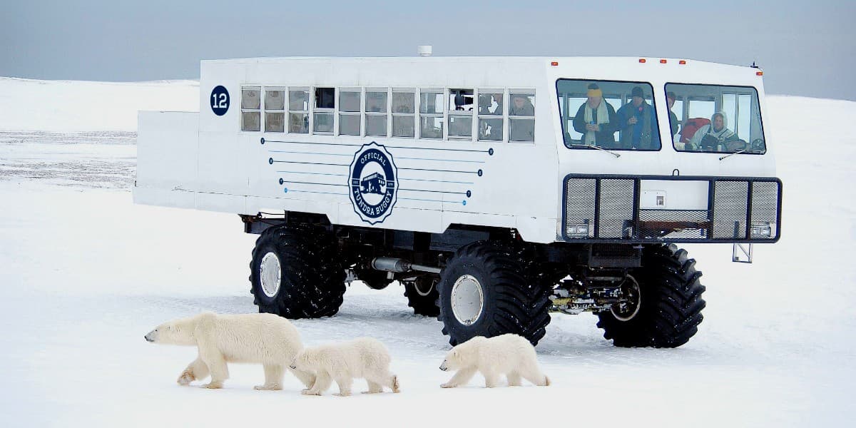 Тысячи экотуристов ежегодно приезжают в канадский поселок Черчилл на берегу Северного Ледовитого океана, чтобы получить шанс увидеть белых медведей. Чтобы возить туристов по льдам, местная туристическая компания Frontiers North Adventures использует 40-местные «автобусы» Tundra Buggy с дизельными двигателями.