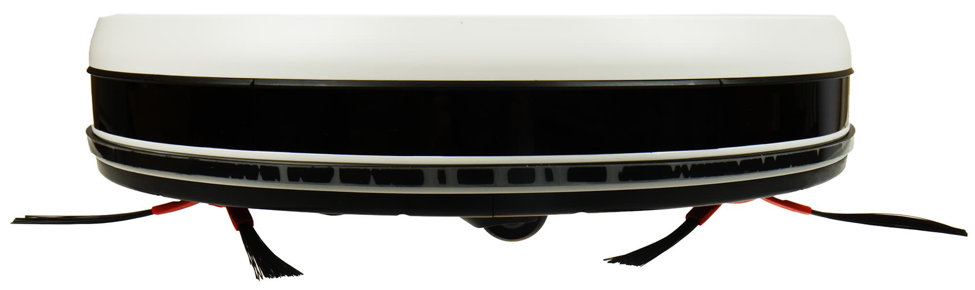 Подавляющее большинство роботов-пылесосов круглые, и Robot Cleaner R1 — не исключение. Корпус прибора выполнен из белого пластика (кроме верхней панели — она сделана из закаленного стекла), боковые стороны декорированы черными вставками.