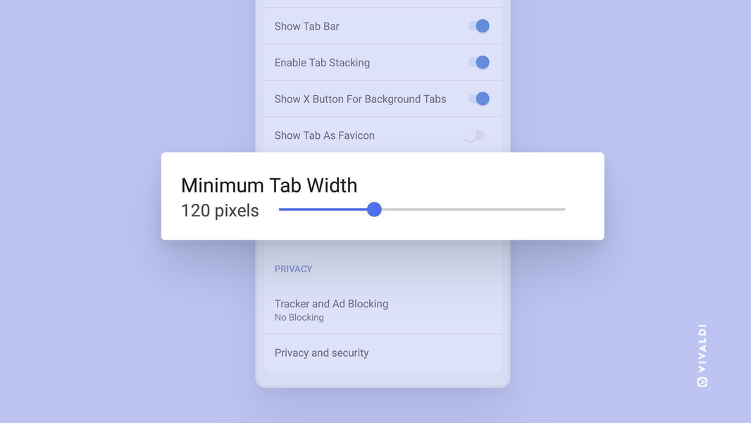 Ещё одно новшество — настройка-ползунок, позволяющая ужимать ширину вкладок до минимума. Данная опция будет доступна только в том случае, если отключён параметр «Значок вместо вкладки».