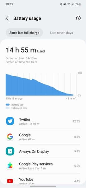 Речь идёт о том, что постоянно пользоваться Galaxy S22 можно примерно в течение 4,5–5 часов. За это время заряженный на 100% аккумулятор разряжается полностью. Для сравнения: Galaxy S22 Ultra, оснащённый аккумулятором ёмкостью 5000 мА•ч, в таком режиме работает чуть больше восьми часов. Интересно, что и с отключённым экраном аккумулятор тоже активно теряет заряд. В общем, у Galaxy S22 обнаружилось слабое место. И вряд ли с этим можно будет что-то сделать. В конце концов флагманы покупают не для того, чтобы просто звонить, а активная работа с Galaxy S22 (фото, видео, соцсети, мессенджеры, браузер) способна разрядить аккумулятор смартфона очень быстро.