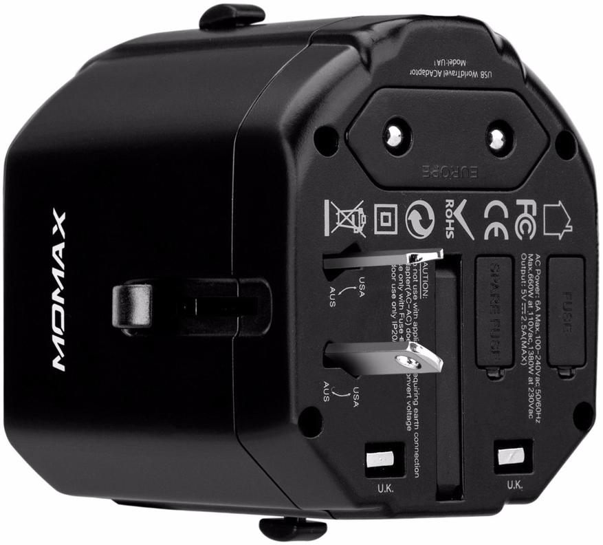 Momax World USB AC Travel Adapter подойдет для любой розетки мира