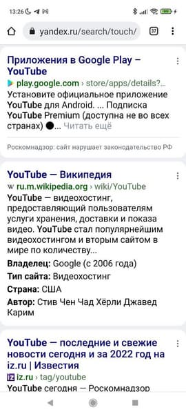 Яндекс начал выполнять требования Роскомнадзора в отношении Google — в поисковой выдаче ресурсы Google теперь отмечаются как нарушители российского законодательства.