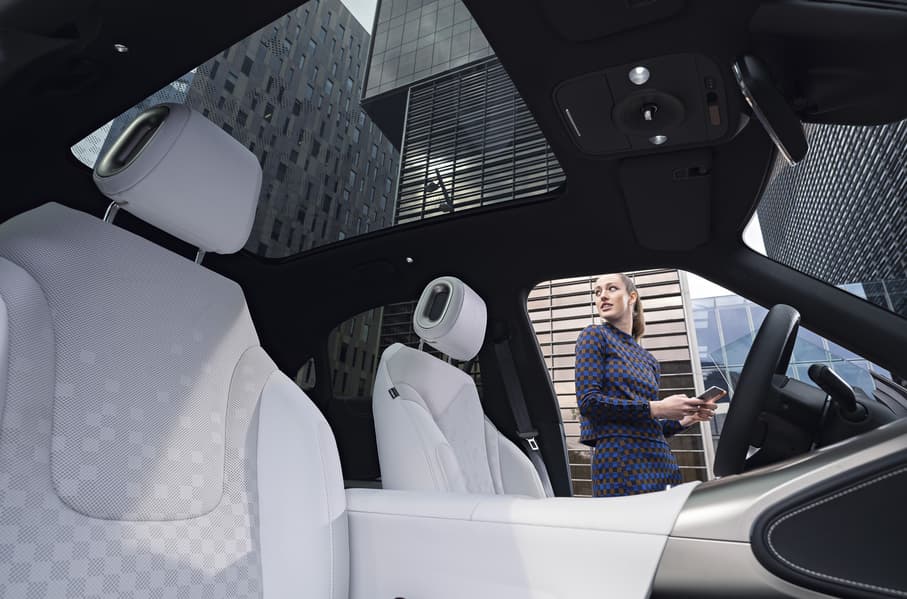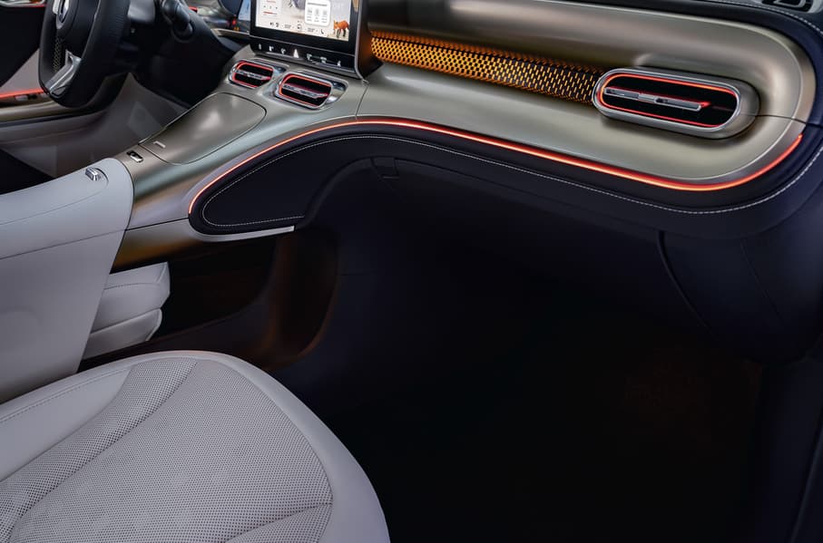 Перед водителем расположена цифровая приборная пнель с экраном диагональю 9,2 дюйма, а также проекционный дисплей на лобовое стекло. Центральный экран имеет диагональ 12,8 дюйма. Он сочетается с интеллектуальной системой взаимодействия человека с компьютером Smart Universe. Пользователи могут вызвать помощника-аватара на экран, который позволит управлять системами и сможет отвечать на вопросы. Также есть аудиосистема с 13 динамиками и фоновая подсветка с 64 цветами на выбор.