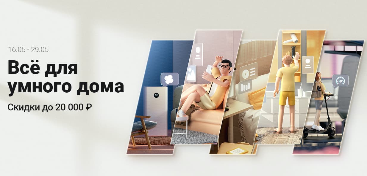 Акция «Всё для умного дома» уже началась и продлится до 23:59 по московскому времени 29 мая 2022 года. В её рамках обещаны скидки до 20 тысяч рублей.