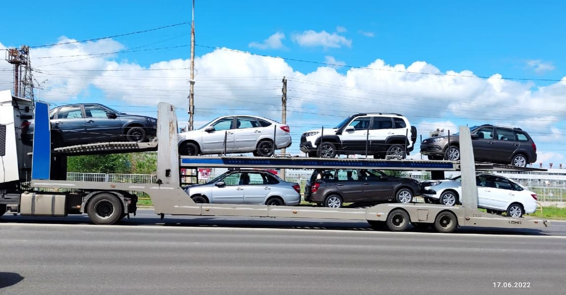 В ролике показано, как полностью загруженный автовоз выезжает с территории АвтоВАЗа. В партии, которую он везёт, есть один универсал Granta Cross, три лифтбэка и четыре седана, причём среди них есть авто как на 14-дюймовых штампованных, так и на 15-дюймовых литых дисках. Затем выехали ещё несколько автовозов.