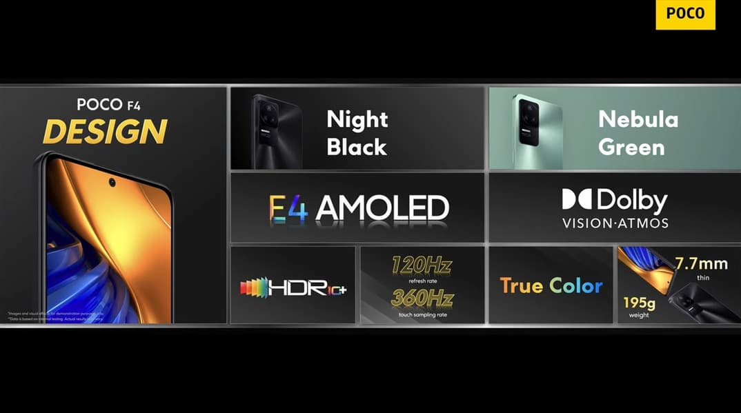 Poco F4 5G называют «лучшим смартфоном со Snapdragon 870 на рынке». Он получил плоский экран AMOLED Samsung E4 с разрешением Full HD+ и кадровой частотой 120 Гц. Диагональ дисплея составляет 6,67 дюйма, а его защиту обеспечивает закалённое стекло Gorilla Glass 5. Сам смартфон защищён от пыли и воды в соответствии со степенью IP53.