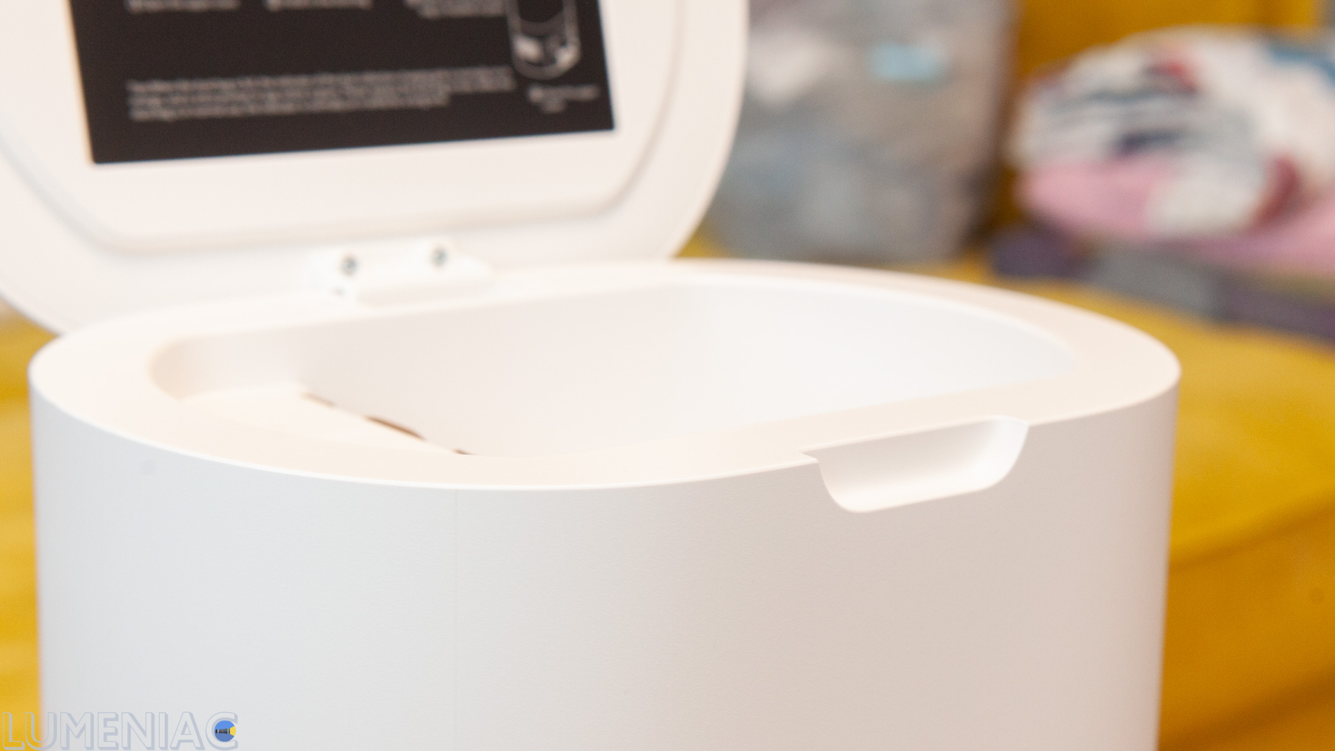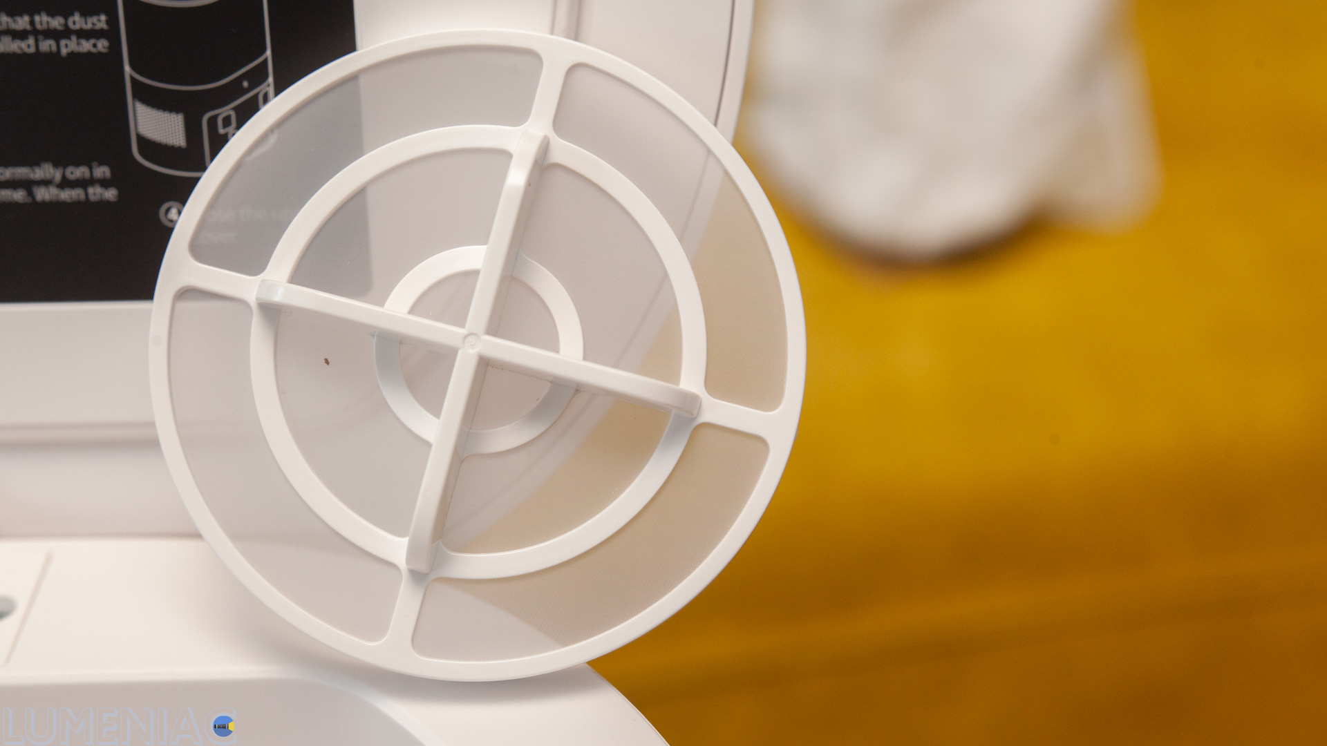 Если потянуть за крышку, то поднимается крышка с фильтром и открывается доступ к 0.5л пылесборнику, теперь тот можно вытряхнуть. Вот и еще одна пасхалка, мне эта часть определённо напоминает какого-то милого робота.