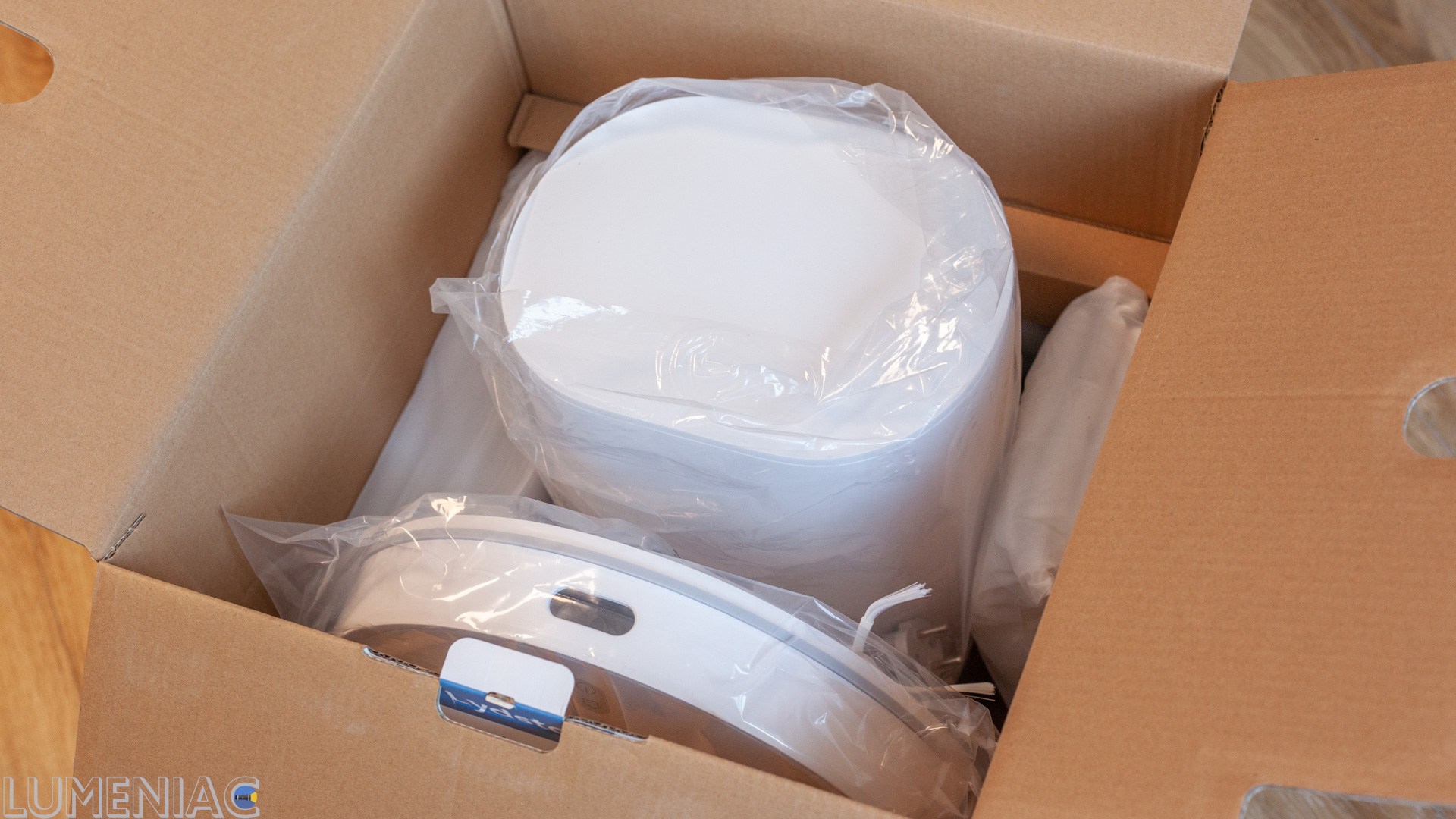 Робот-пылесос упакован «луковицей», в 2 разных коробки.