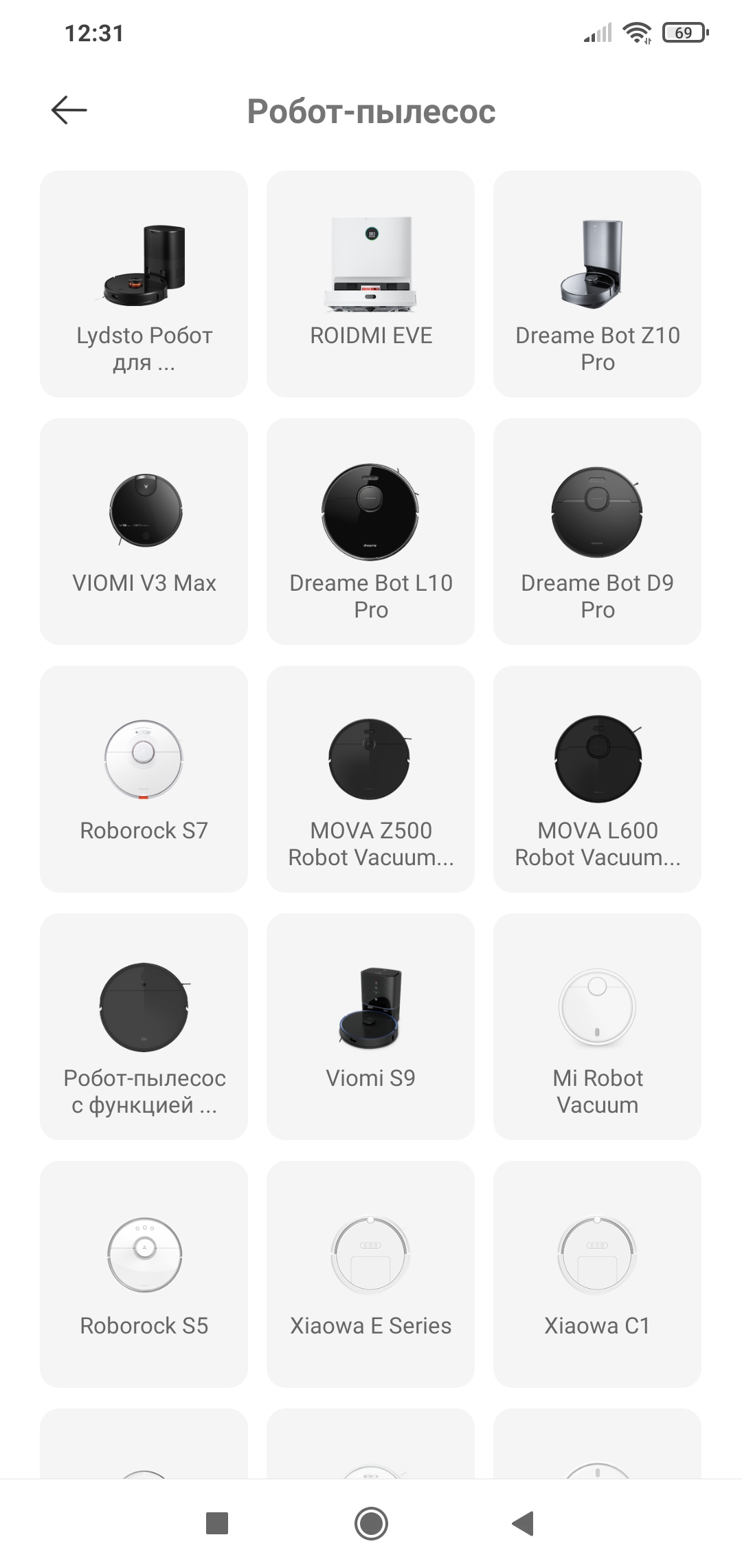 После этого надо выбрать нужную модель робота-пылесоса. Сейчас нет Pro модели, только обычный R1. Тут он первый ряд сверху слева. Добавляйте его, подсоединяйтесь к Wi-Fi пылесоса, потом выбирайте нужную домашнюю сеть и всё.