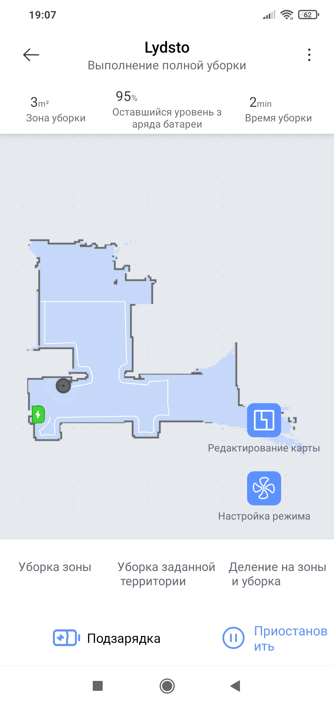 К слову, уборка такой площади съела порядка 35% аккумулятора ёмкостью в 5200mah, т. е вполне реально рассчитывать на обещанные производителем 200кв. м