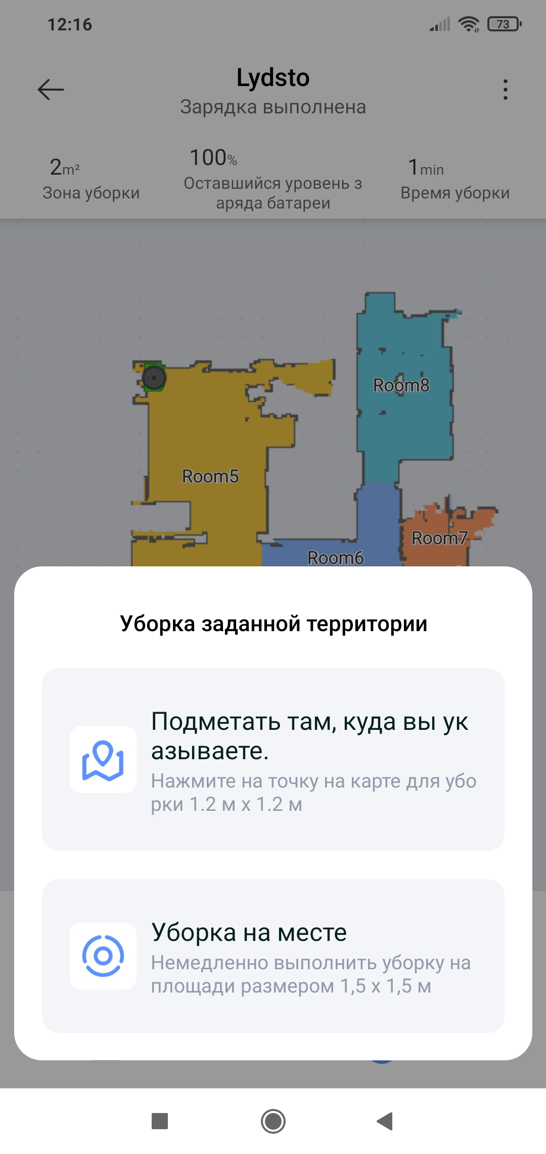Если же вам не надо убирать всю квартиру, то вы всегда можете просто выбрать зону уборки или ткнуть пальцем на карту. Последнее актуально, если вы что-то рассыпали.