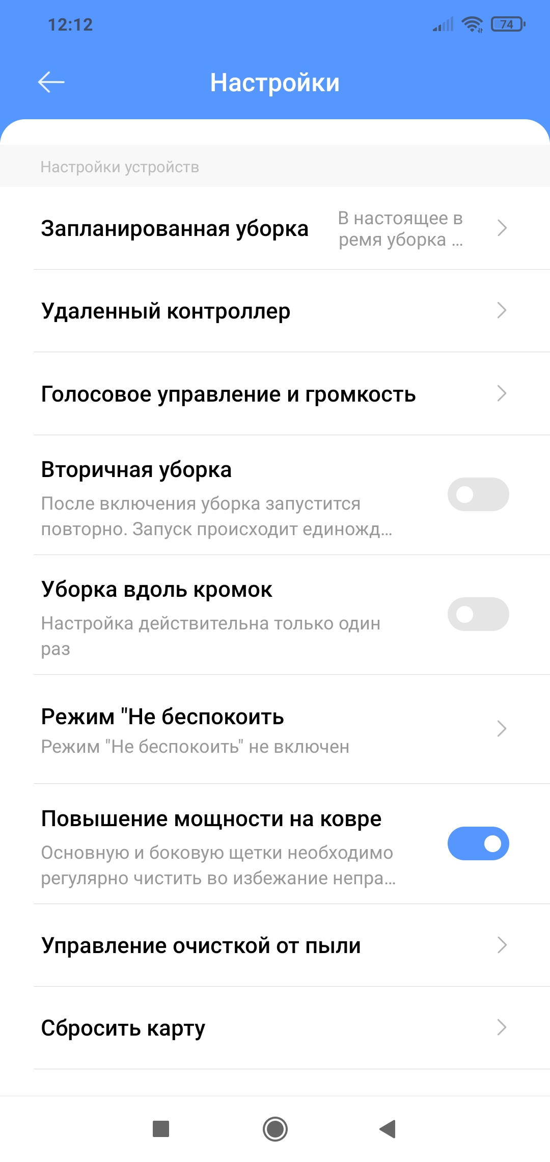 Если припрёт, то вы можете управлять роботом-пылесосом через виртуальный джойстик на экране, но это откровенно корявый вариант, даже не знаю когда он может пригодиться.