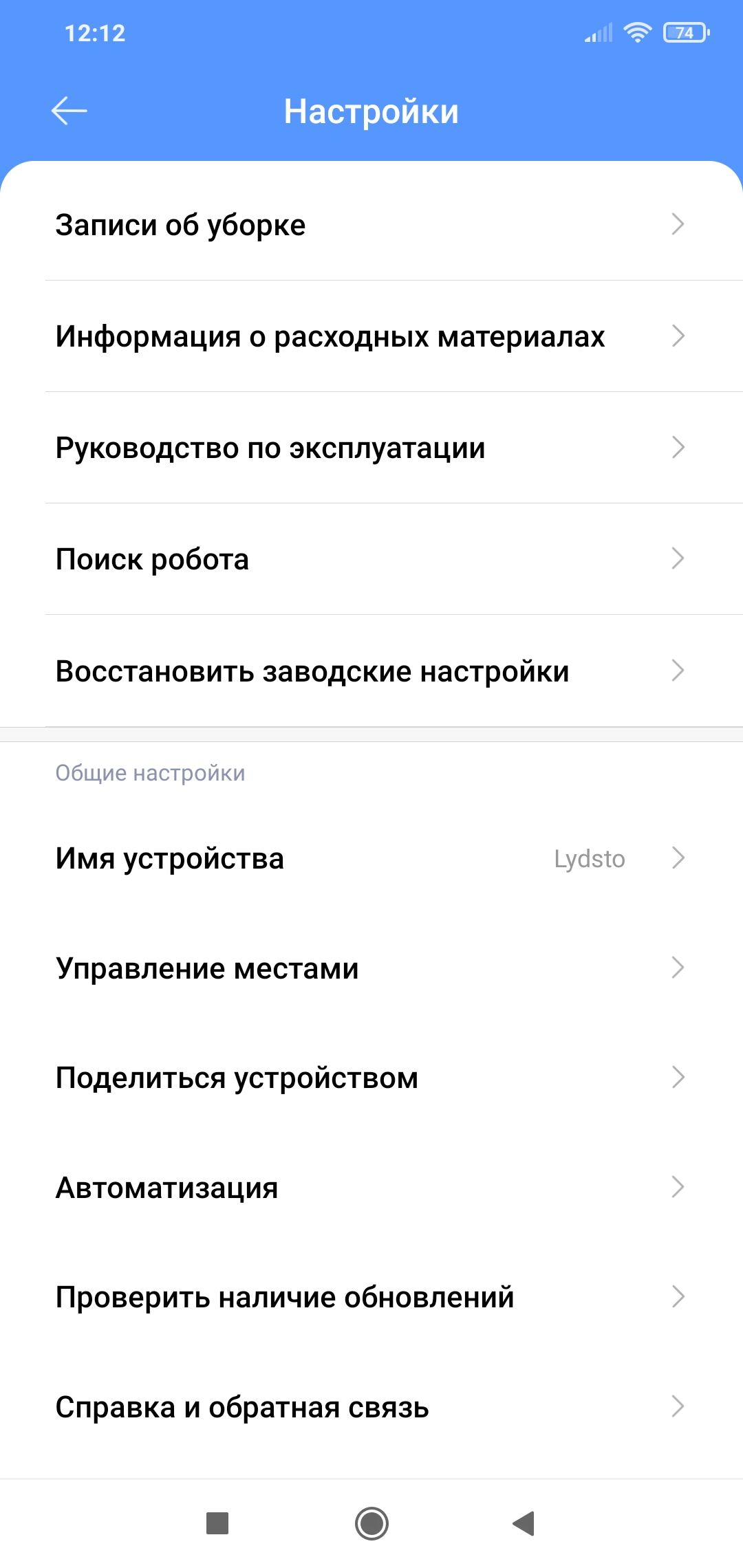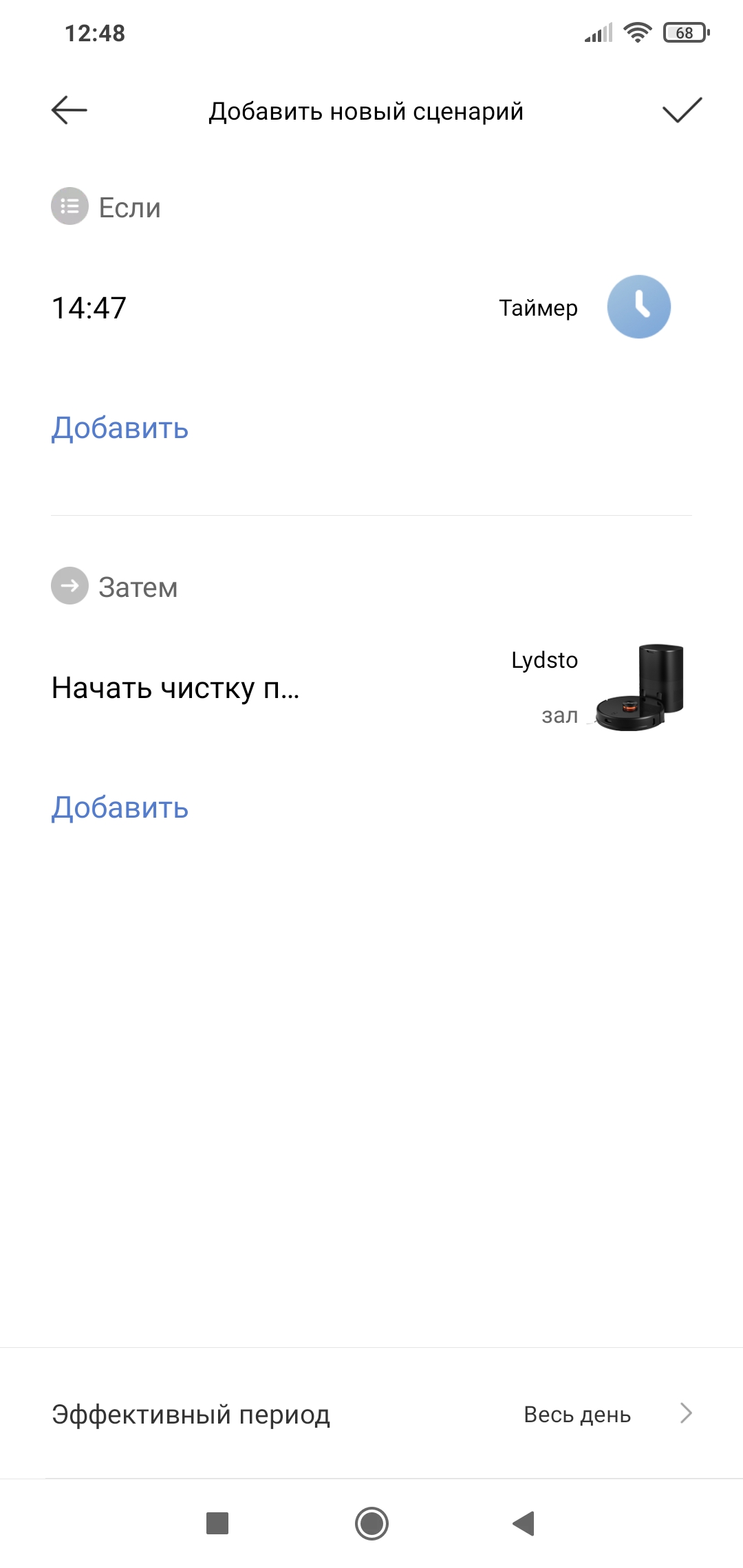 В режиме «автоматизации» вы можете задавать разные сценарии. Весь мой «умный дом» сводится к паре ламп и роутеру. Никаких датчиков нет. Так что я могу лишь настроить уборку по расписанию. Другого, впрочем, мне и не надо. А, если честно, то и расписания тоже не нужно. Вот сегодня жена поедет с дачи домой, за час до её прибытия она просто нажмёт «начать уборку» и когда приедет, то всё уже будет чисто. Останется только снять и сполоснуть салфетку для влажной уборки.