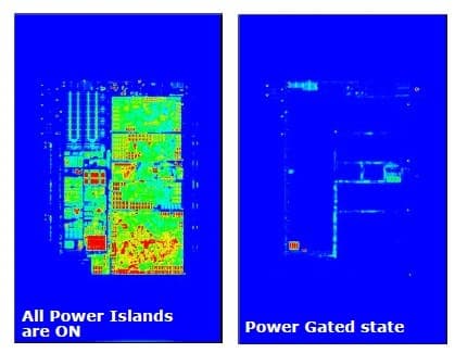 ИК-фотография ядра Lincroft на полной мощности и полном простое. В последнем случае единственное «горячее» пятнышко — блок управления питанием ядра.