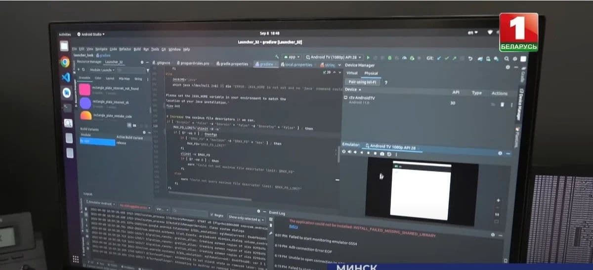Также отмечается, что на другом изображении есть надпись «Android TV (1080p) API 26», при этом напомним, что завод «Горизонт» выпускает смарт-телевизоры с ОС Android. Судя по всему, это среда разработки, запущенная на ОС Ubuntu.