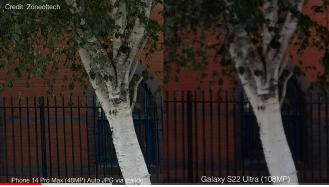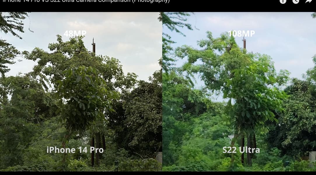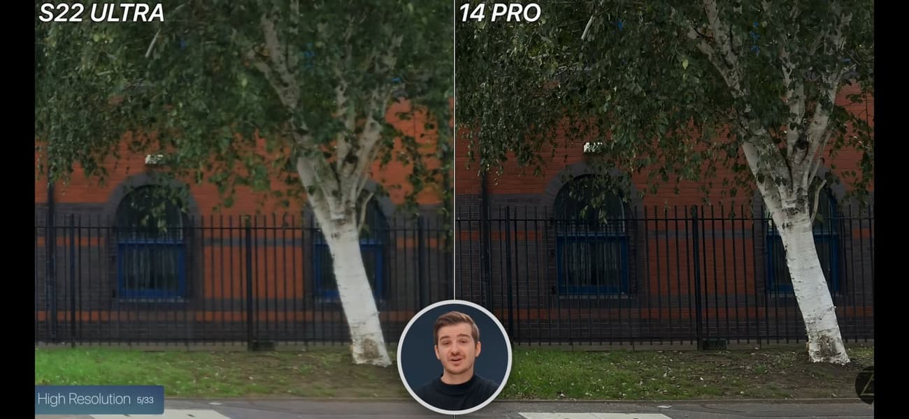 В одном из свежих обзоров в YouTube сравнили камеру iPhone 14 Pro, которая получила датчик изображения разрешением 48 Мп, со 108-мегапиксельной камерой Samsung Galaxy S22 Ultra.