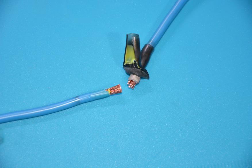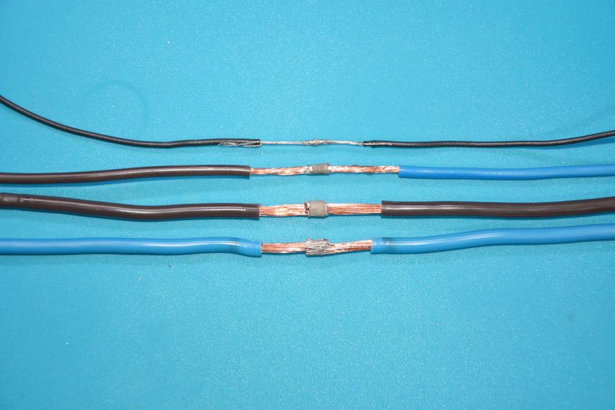 Соединение же проводов большого сечения, рассчитанных на большие токи предлагаемым способов вообще считаю диверсией и угрозой народному хозяйству). Учитывая большую теплоемкость таких проводов и невозможность слишком сильно увеличивать температуру и время нагрева (портится термоусадка), использовать такой способ соединения для проводов с большой токовой нагрузкой просто опасно — надежного соединения нет.