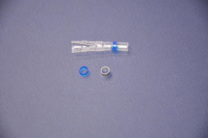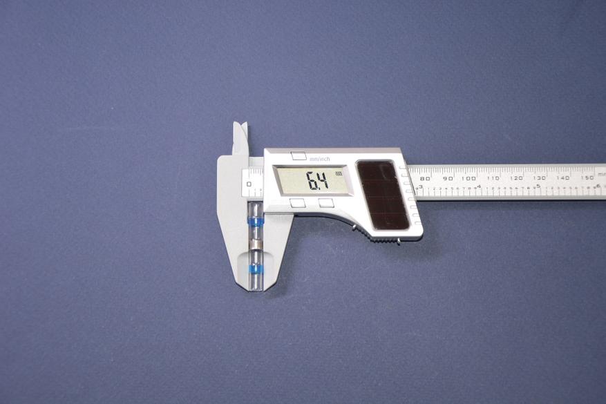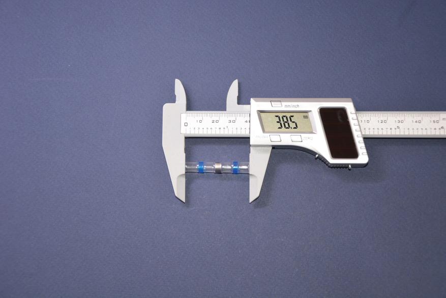 Трубки с синими маркерами имеют почти такую же длину, но диаметр уже 6,4 мм и предназначены для соединения проводов AWG 16-14, т. е. с площадью сечения 1,31-2,08 мм2.