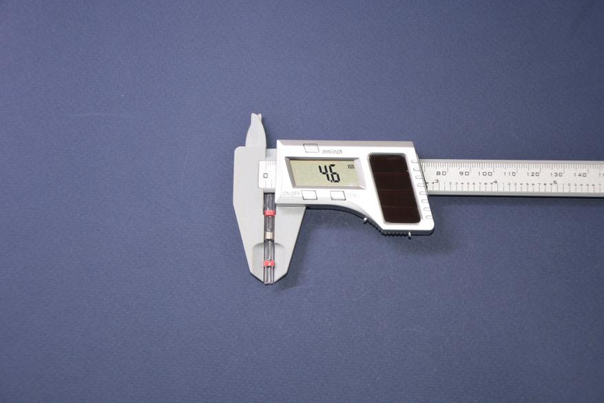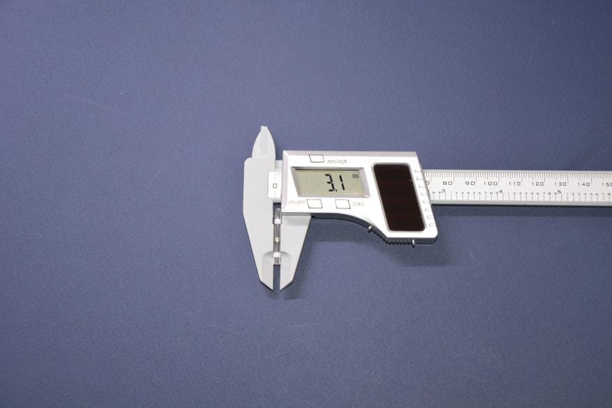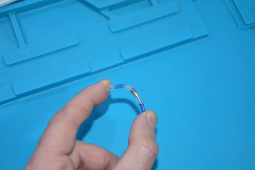 Еще один важный параметр для термоусадочных трубок — это коэффициент усадки. Здесь он указан как 2:1. По факту приблизительно так и есть. Синяя трубка при начальном диаметре 6,4 мм уселась до 3,7, т. е. 1,73:1, не утратив эластичности.