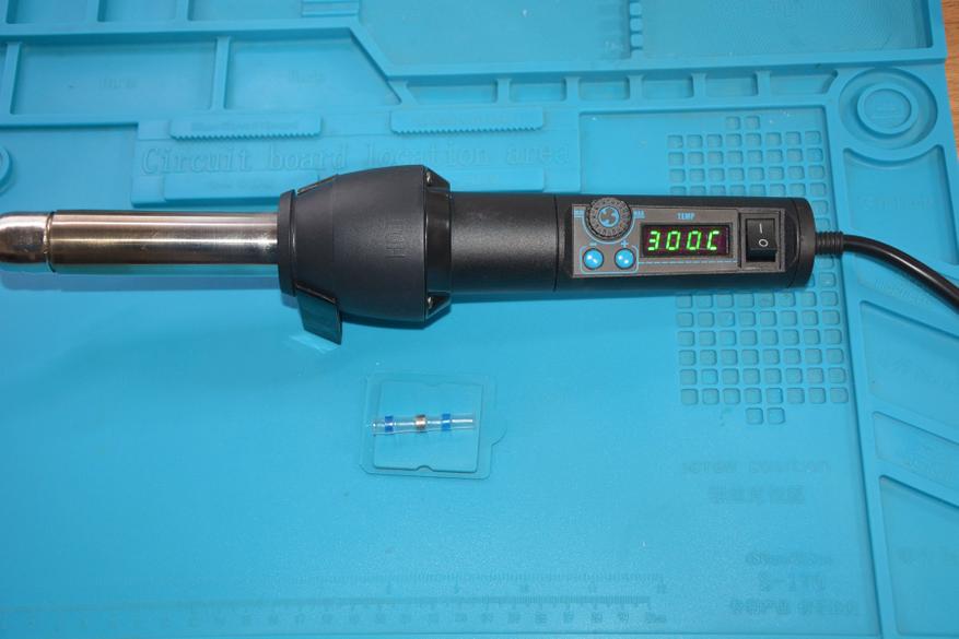 В описании указано, что трубки начинают усаживаться при минимальной температуре 80 градусов Цельсия, а припой плавиться при 136. Как бы понятно, что для прогрева трубки, клея, припоя и проводов нужна температура повыше. Попробовал припой при 180 — плавится легко. А вот клей оказался тугоплавким. При 180-ти градусах лишь коробится и прилипает к жалу. Хотя, наверное, это и правильно — он должен обволакивать, а не вытекать. Само по себе это конечно ни на что не влияет, но просто факты. Для нормального соединения нужно разогревать сильнее.