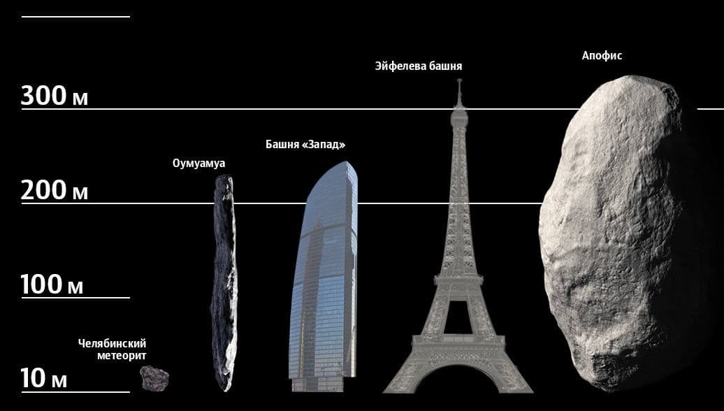 Апофис пройдёт на расстоянии 38 тыс. км от Земли в 2029 году. Диаметр астероида составляет чуть менее 400 метров, а массу астрономы оценивают приблизительно в 27 млн тонн.