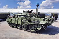 Представлена новая версия лёгкого танка «Спрут-СДМ1», который получил комплект дополнительной защиты, прикрывающий переднюю часть корпуса, и комплекс оптико-электронного подавления, серьёзно затрудняющий противнику применение средств поражения различных видов.