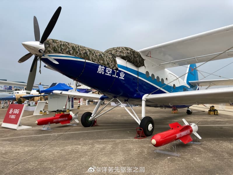 На мероприятии AirShow China 2022, которое в эти дни проходит в Китае, в городе Чжухай, продемонстрировали ремоторизованный вариант китайской копии советского самолёта Ан-2. Рядом с ним представлены противопожарные авиабомбы со спутниковым наведением.