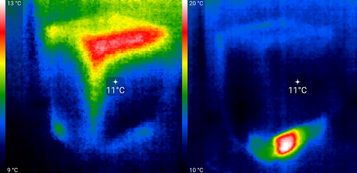 Боковые стенки прибора, при работе практически не нагреваются. Как обычно, мы приводим фотографии включенного устройства в инфракрасном диапазоне.