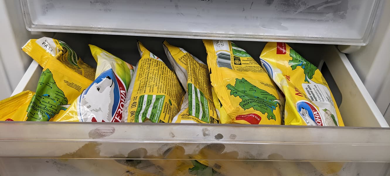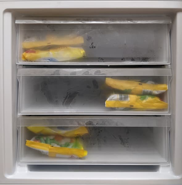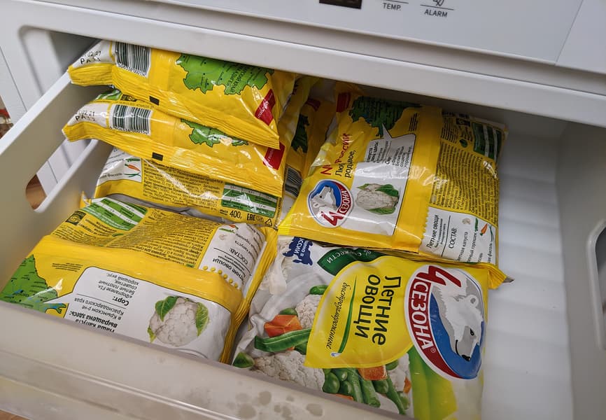 В любом из трех одинаковых ящиков свободно размещаются до двенадцати стандартных пакетов с замороженными овощами или фруктами.