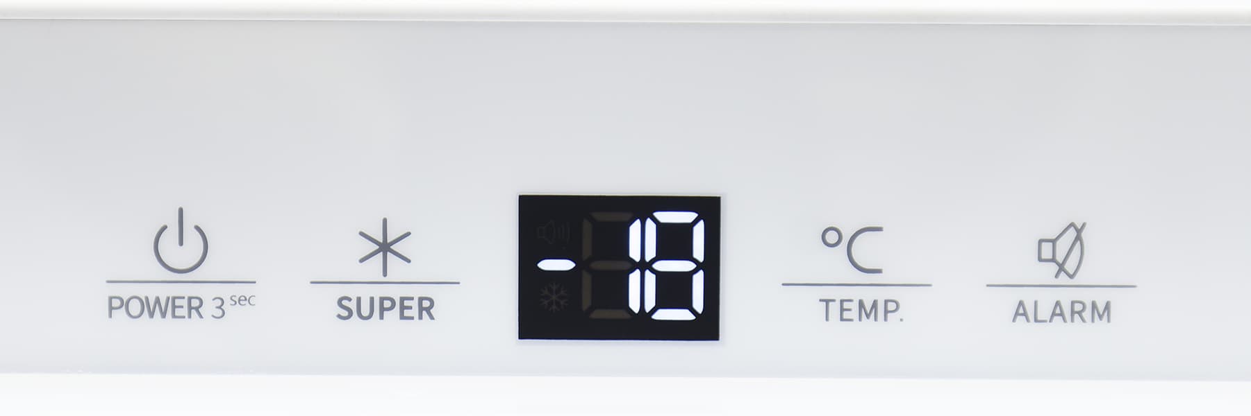 Включать и настраивать морозилку можно с панели на верхней кромке передней стенки, над дверцей. В центре у нее светодиодный дисплей, на котором крупно выведена установленная температура хранения.