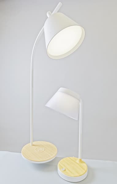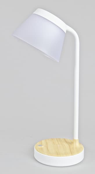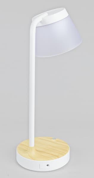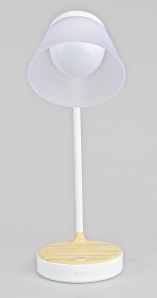 Настольная лампа Kitfort KT-3335 так же хороша, как и ее большой брат. Плавные линии, белый матовый металл плюс пластиковая вставка под светлое дерево — все на радость поклонникам скандинавского стиля и просто минимализма.