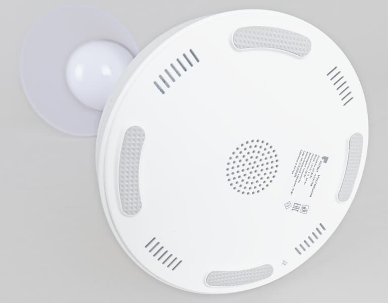 Кроме обычного освещения, лампа может гореть всеми цветами радуги. В полной темноте RGB-подсветка деликатно освещает небольшое пространство вокруг себя и не бьет по глазам. Функция беспроводной зарядки не дает быстрого результата, наш телефон заряжался до 100% 3 часа 8 минут, но функция есть, и она работает.