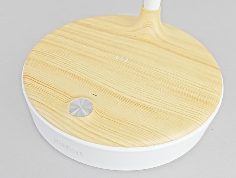 Светодиодная настольная лампа Kitfort KT-3335, как и первая рассмотренная модель, имеет сенсорное управление и оснащена функцией беспроводной зарядки мобильных устройств Qi.