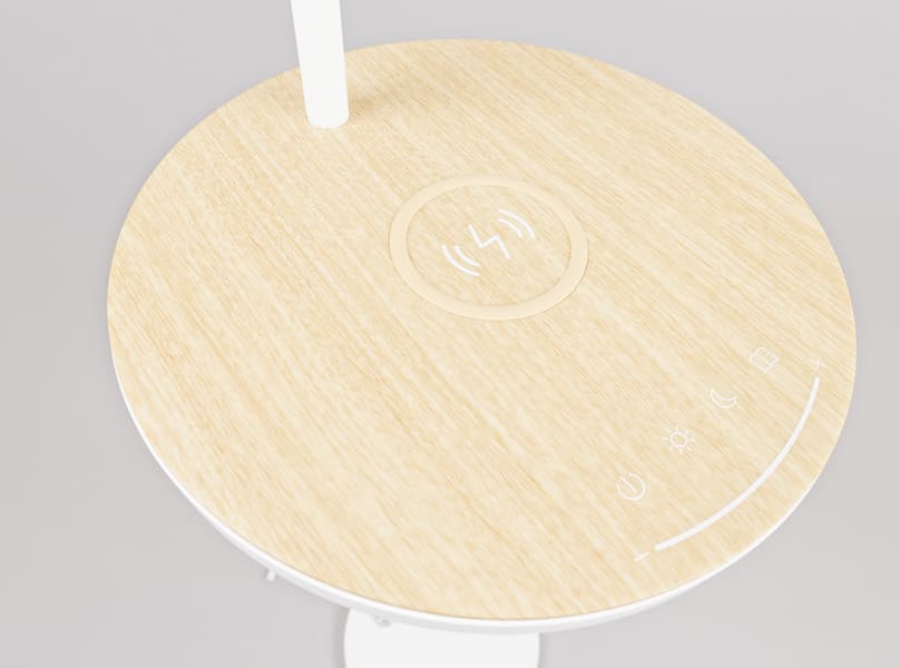 Положив мобильное устройство, поддерживающее функцию беспроводной зарядки Qi, на область посередине основания лампы, вы увидите, как небольшой индикатор возле кнопки включения загорится красным, что будет означать: процесс зарядки пошел. При достижении полной зарядки индикатор будет гореть зеленым светом.
