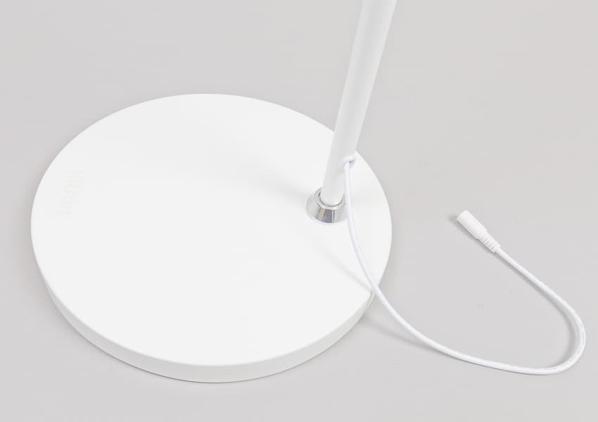 Не тяжелая по весу, всего 1,61 кг, лампа устойчиво держится на круглом основании. Сбоку внизу находится разъем для подключения шнура блока питания.