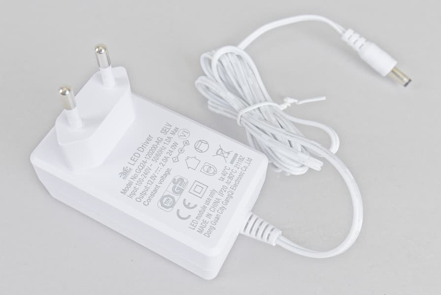 После подключения настольной лампы к электросети через блок питания, нажимаем кнопку включения и регулируем яркость. Лампа работает в режиме нейтрального света с температурой около 4200 К.