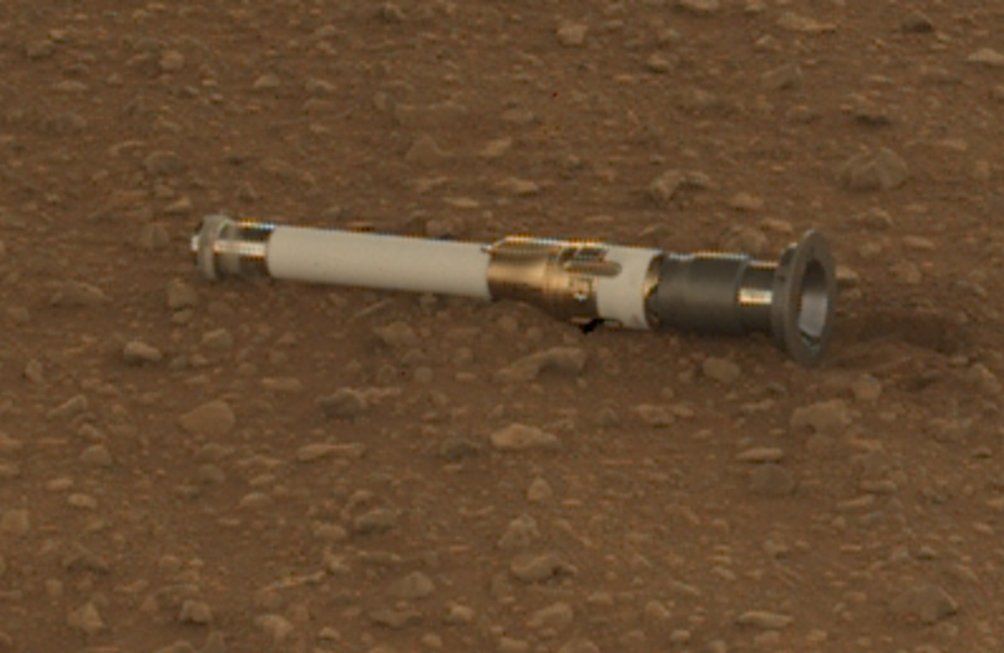 Титановая трубка с образцом горной породы сейчас лежит на поверхности Марса. В течение следующих двух месяцев марсоход разместит в общей сложности 10 трубок в месте под названием Three Forks (Три вилки), построив первое в истории человечества хранилище образцов на другой планете. В NASA заявили: