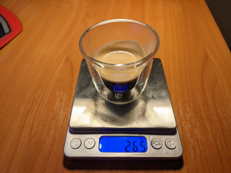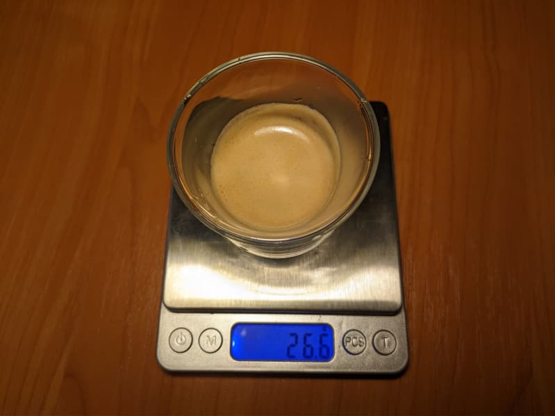 Классический вариант эспрессо наш автомат готовит одним нажатием кнопки. На стандартных настройках машина наливает около 26 граммов напитка.