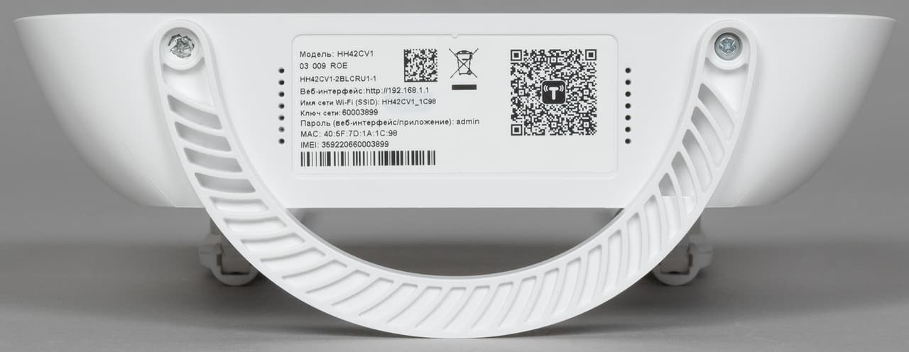 На дне находится информационная наклейка с данными для подключения к устройству — имя и пароль сети, IP-адрес и пароль администратора для доступа к веб-интерфейсу. Отметим, что резиновых вставок на подставке нет.