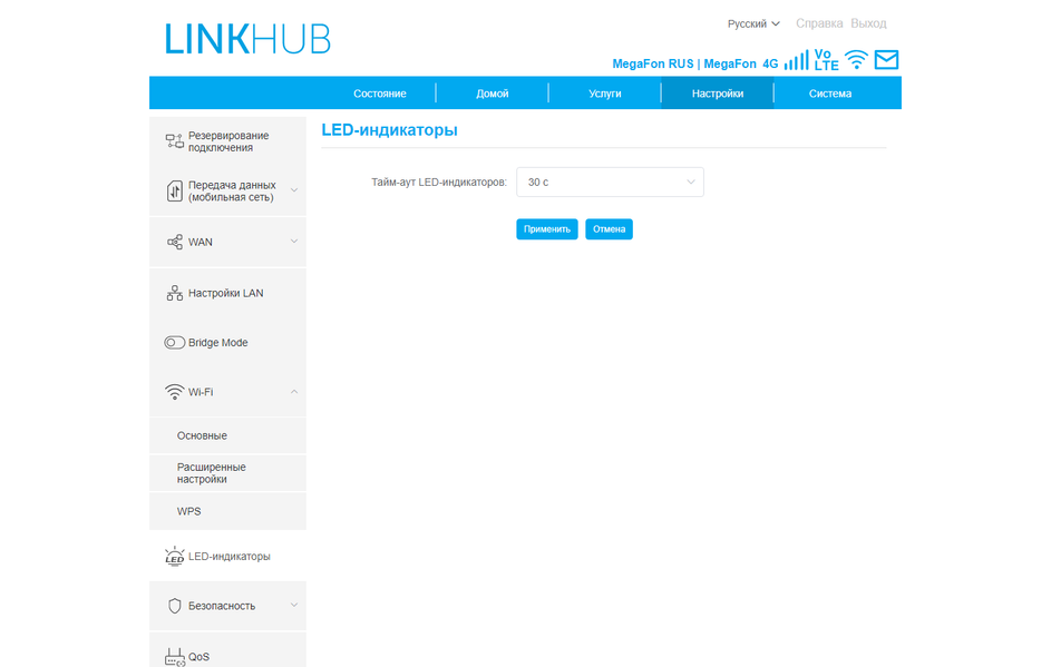 Роутер имеет настройку длительности свечения светодиодных индикаторов передней панели. Учитывая их высокую яркость, это может быть полезно.