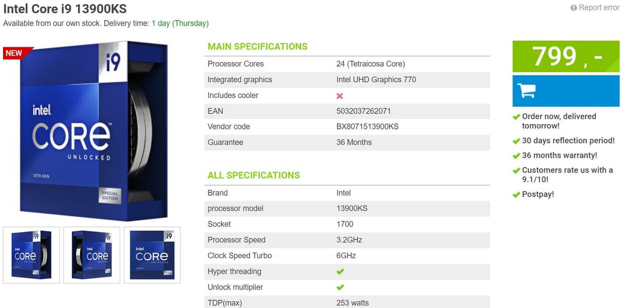 Core i9-13900KS появился в Нидерландах