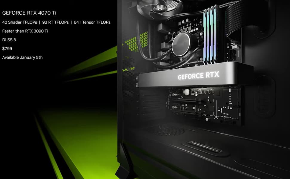 Nvidia официально представила видеокарту GeForce RTX 4070 Ti вчера, продажи ее стартуют завтра, ну а сегодня ресурс WCCF опубликовал большой обзор новинки – ее протестировали в более чем десятке игр. Судя по обзору, компания ни в чем не обманула: она обещала, что GeForce RTX 4070 Ti продемонстрирует производительность на уровне GeForce RTX 3090 Ti, но при вдвое меньшем потреблении – и все действительно так и есть.