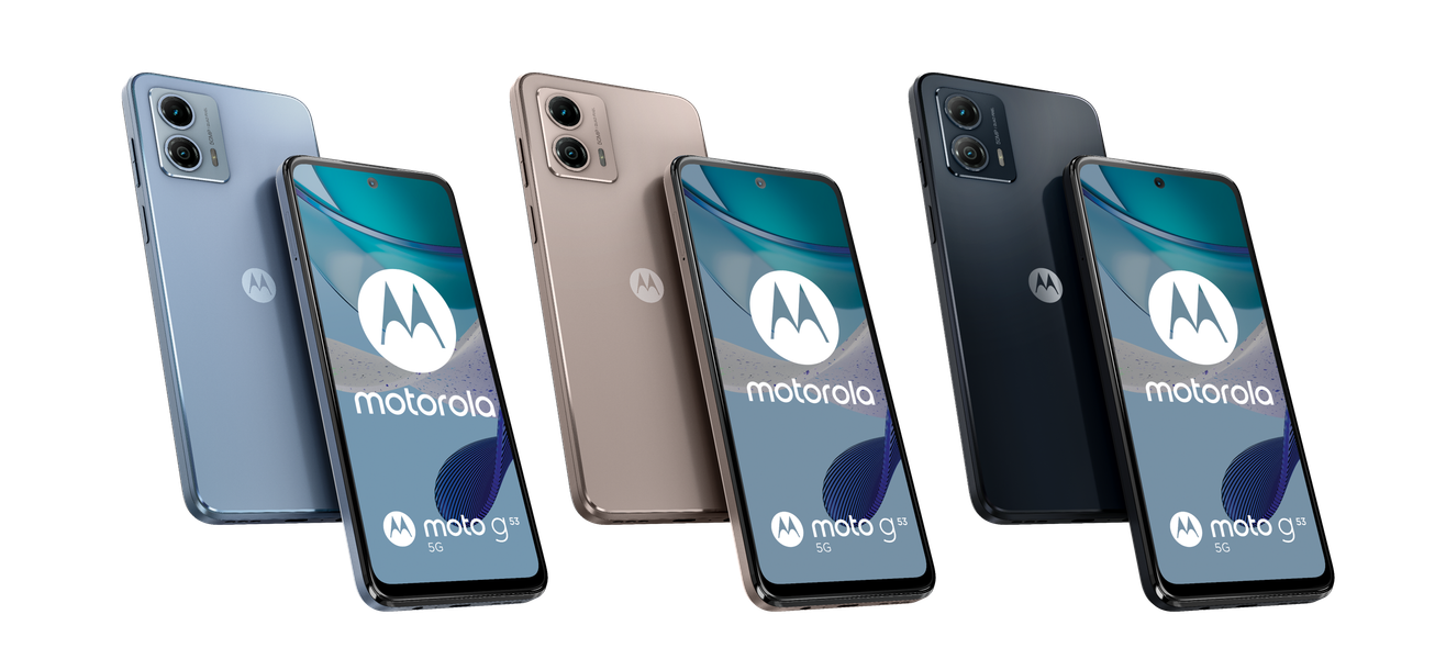 Продажи в Европе уже начались. Младшая модель Moto G53 5G продаётся по цене от 250 евро. Смартфон получил разрешение HD+ (1600 х 720 пикселей), фронтальную камеру на 8 Мп, двойную основную камеру (50 и 2 Мп), SoC Qualcomm Snapdragon 480+, от 4 до 8 ГБ оперативной памяти, 64 или 128 ГБ встроенной флеш-памяти, аккумулятор ёмкостью 5000 мА·ч с поддержкой зарядки мощностью 30 Вт, сканер отпечатков пальцев, аудиоразъём на 3,5 мм, слот для карт памяти формата microSD.